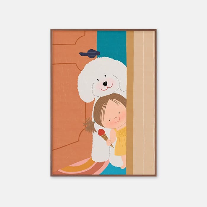 루잇 작가의 작품은 단지 한 장면을 포착한 것을 넘어, 그 앞뒤에 숨겨진 이야기를 상상하게 만듭니다. 'Life is too short' 포스터에서는 강아지를 너무나 사랑하는 소녀의 마음이, 'Happy waiting' 포스터에서는 누군가를 기다리는 설렘과 행복이 느껴집니다. 이처럼 모든 일러스트에는 저마다의 서사가 담겨 있어, 그림을 감상하는 행위가 곧 하나의 이야기를 읽는 경험이 됩니다. 이러한 스토리텔링은 아이들의 상상력과 창의력을 자극하는 훌륭한 매개체가 될 수 있습니다. 아이들은 그림을 보며 자신만의 이야기를 만들고, 그림 속 주인공들과 친구가 되어 함께 모험을 떠날 수 있습니다. 이처럼 풍부한 상상력을 자극하는 따뜻한 그림은 아이의 방을 단순한 잠자는 공간이 아닌, 꿈과 이야기가 자라는 특별한 공간으로 변화시켜 줄 것입니다.