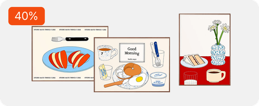 스튜디오마요의 작품은 다양한 형태로 만나보실 수 있습니다. 공간의 분위기를 바꿔주는 아트 포스터, 패브릭 포스터, 캔버스 액자부터 일상에서 쉽게 사용하는 엽서, 스티커, 스마트폰 케이스까지 폭넓은 라이프스타일 제품군을 갖추고 있습니다. 앞으로도 뚜누와 함께 더욱 다양한 예술상품을 선보일 예정입니다.